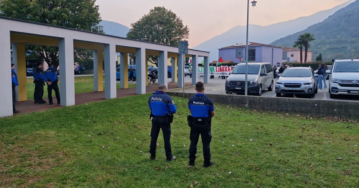 Cassis a Bellinzona per parlare di Bilaterali, protesta Pro Palestina. Il caos è continuato anche alla fine