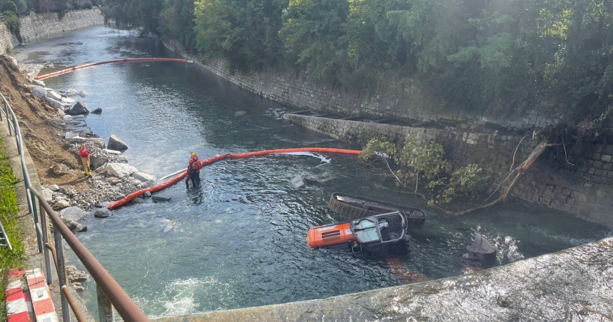 Escavatore nel Breggia, uomo illeso ma fiume inquinato