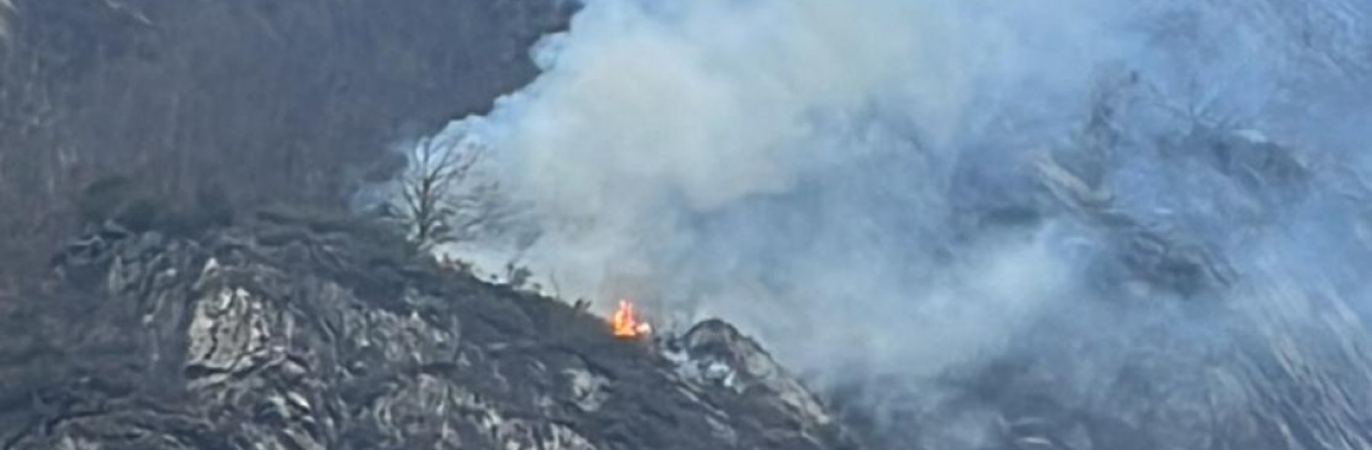 Brontallo, fiamme sulla parete rocciosa sopra l’abitato