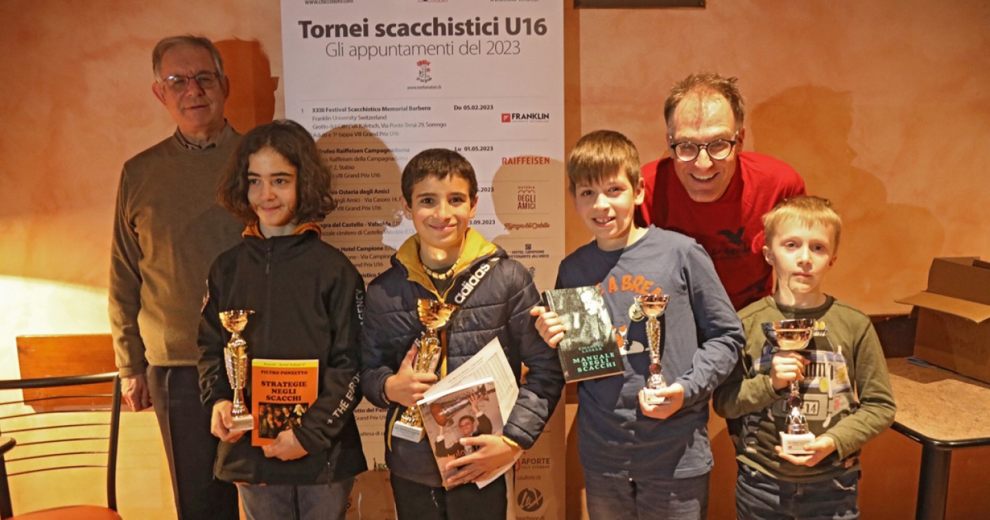 Consegnati i premi ai vincitori della prima tappa, l'edizione 2023 dell'VIII Grand Prix scacchistico under 16 si avvia verso la seconda fase. L'appuntamento è fissato per lunedì 1° maggio negli spazi della banca Raiffeisen della Campagnadorna a Stabio. La manifestazione si rivolge ai piccoli campioni della Svizzera italiana e della vicina Italia, ma anche ai principianti. Si tratta, di fatto, di una bella occasione per i giovani scacchisti di vivere l’esperienza di giocare un vero torneo.