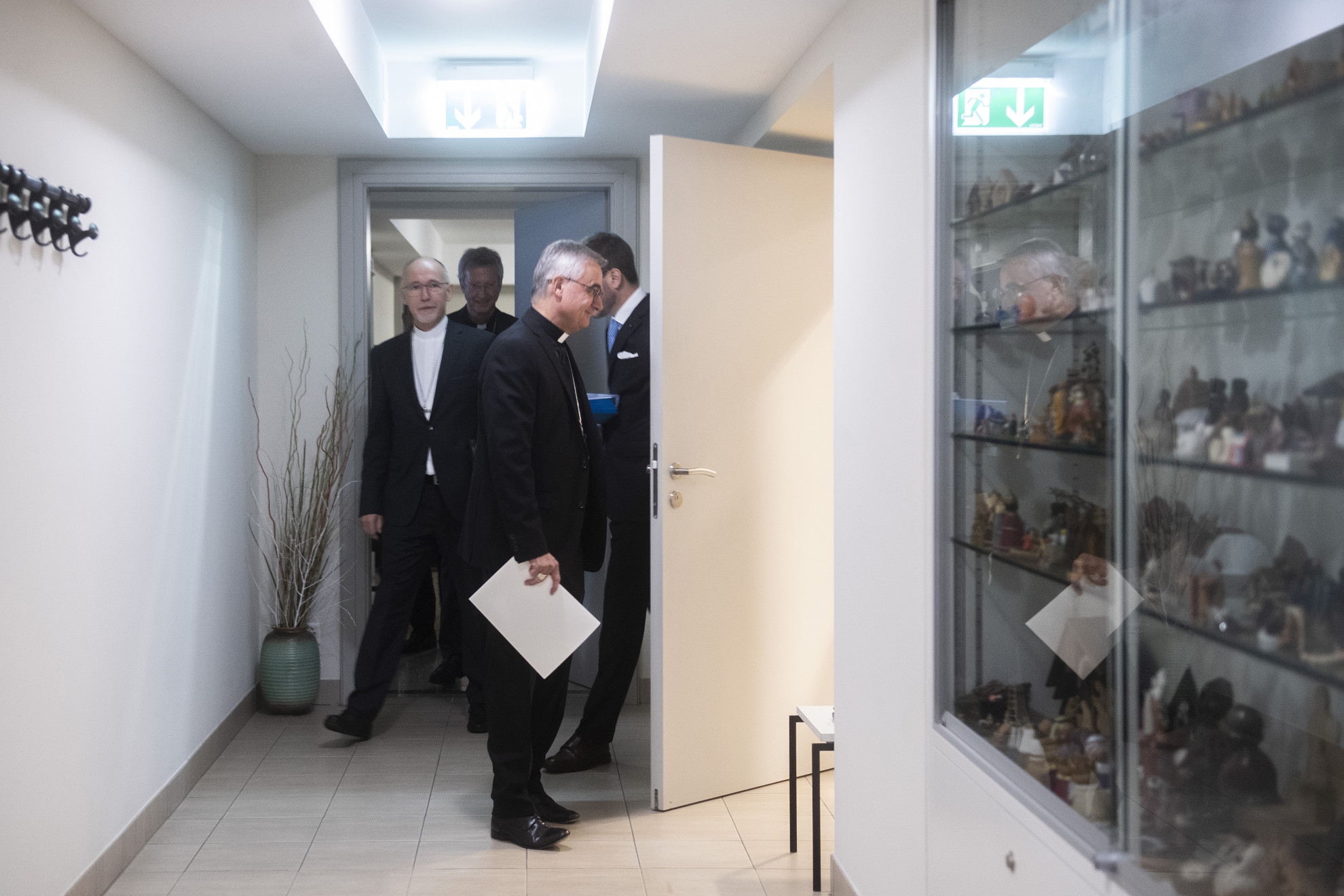 Teso e chiaramente provato in volto monsignor Lazzeri era affiancato dal nunzio in Svizzera Martin Krebs, dal vicario don Nicola Zanini e dall’addetto stampa Luca Montagner. Presente anche colui che sarà chiamato a traghettare la Diocesi luganese fino "alla presa di possesso canonico del successore da eleggere", come indicato dalla Congregazione per i vescovi, i cui tempi però sono ancora tutti da disegnare. Un incarico, quello a De Raemy, che "gli conferisce i diritti, le facoltà e gli uffici che, secondo le norme del diritto, spettano ai vescovi diocesani".