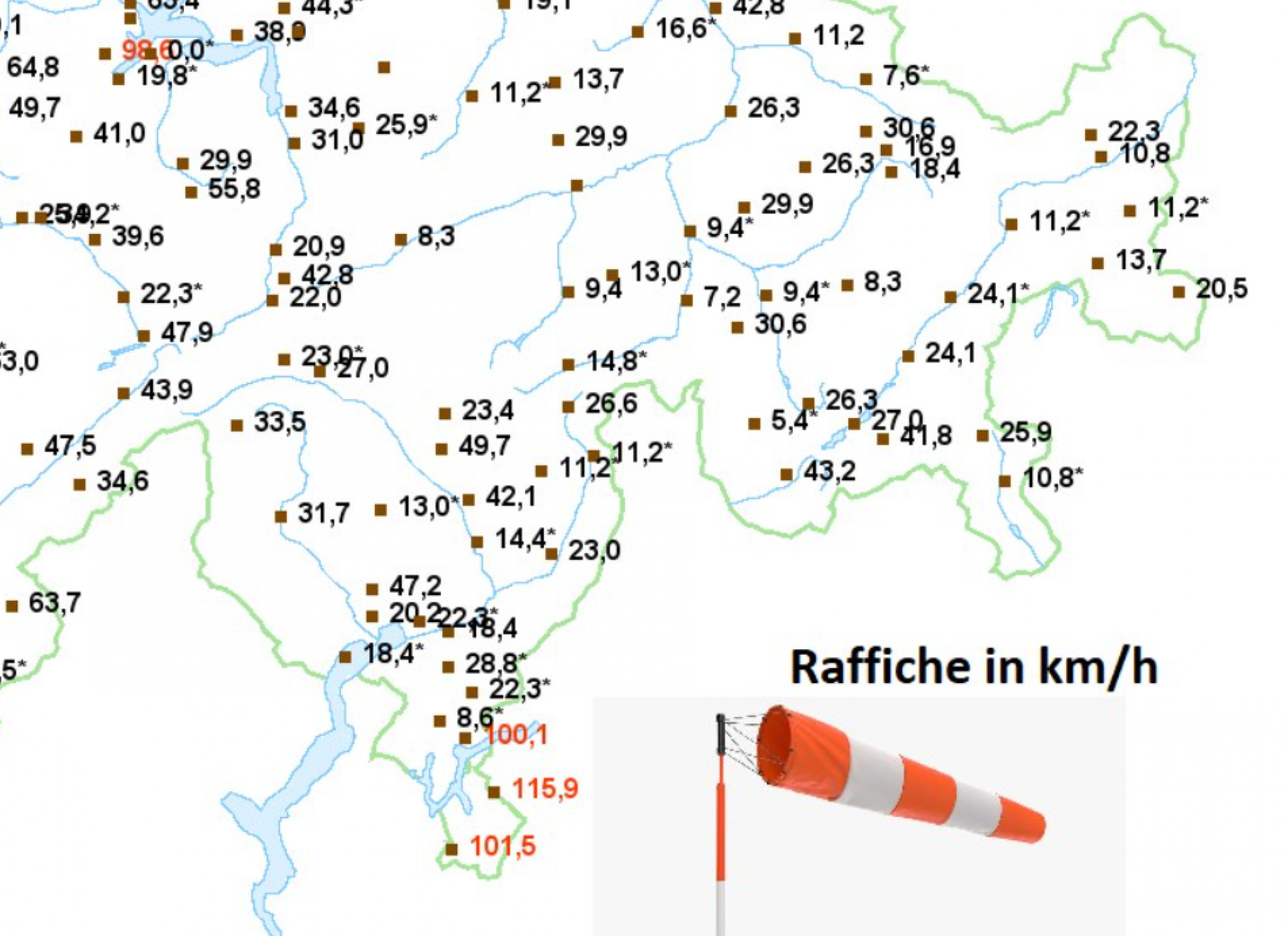 Il maltempo sembra, per il momento, essersi concentrato nel Sottoceneri, fra il Mendrisiotto e il Luganese. Un fenomeno meteorologico di notevole intensità ha colpito il comune di Rancate nelle prime ore del mattino. Il temporale, classificato di intensità rossa da MeteoSvizzera, è stato registrato attorno alle 6. Il passaggio della linea temporalesca della giornata ha inoltre causato raffiche di vento oltre i 100 km/h, indica sempre MeteoSvizzera. Il sistema tempestoso proviene da sud-ovest e si sta spostando in direzione nord-est.