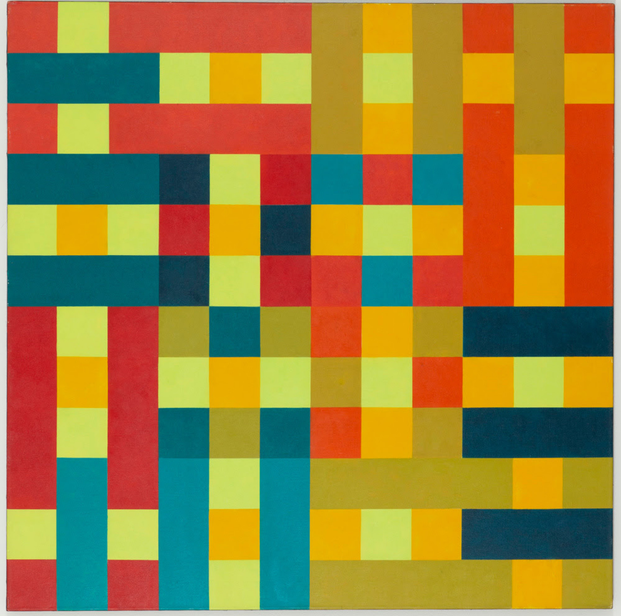© Collezione privataHedi Mertens, Unità a quattro lati uguali che si incontrano in un quadrato centrale, 1971, olio su tela