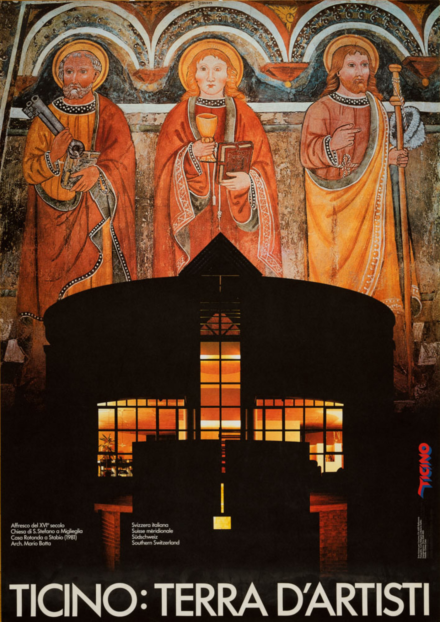 L’allestimento che si inaugura nel fine settimana è la prima antologica dedicata all’opera di Orio Galli, graphic designer che ha contribuito a plasmare soprattutto l’immagine cantonale con i suoi lavori divenuti emblematici e diffusi in lungo e in largo, creando un immaginario peculiare che non attinge per forza ai luoghi comuni sul Ticino e ai suoi attributi (uno su tutti: il boccalino), ma che si riferisce alla storia e alla cultura della regione, passata e contemporanea. Questo dagli anni Settanta all’altro ieri (si pensi al manifesto dei Campionati mondiali di ciclismo su strada a Mendrisio del 2009). Le quattro sale del museo intendono proporre l’iter creativo (di ricerca estetica) e professionale di Galli – la sua cifra – esponendo oltre ai manifesti, anche corporate identity, loghi per imprese, ma pure stemmi comunali (Bioggio) e stampati per la Confederazione, La Posta. In particolare, nella presentazione, si è posto l’accento sulle grafiche realizzate per enti turistici, da quello cantonale – come non pensare al logo rossoblù ‘Ticino’ – ai regionali (non a caso, l’esposizione ha il patrocinio morale di Ticino Turismo), oppure per manifestazioni culturali (il Locarno Film Festival), organizzazioni e partiti. Senza dimenticare i libri d’artista e le sovraccoperte per case editrici (Armando Dadò Editore, Edizioni Ulivo). La lista delle committenze (molte delle quali illustri) è assai lunga, basterebbero appena queste righe per contenerla tutta.