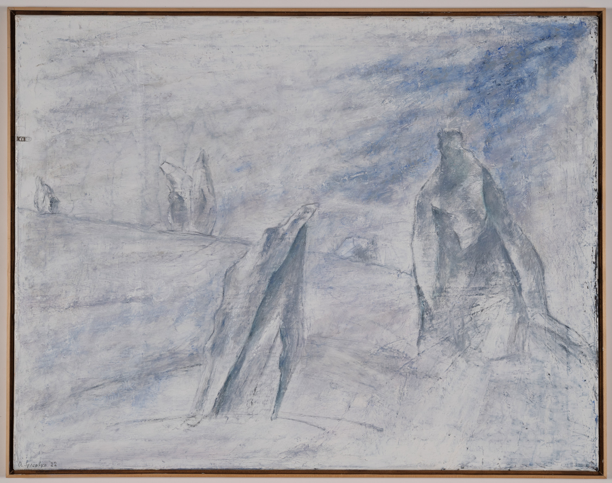 Alcuni saggi critici dedicati al suo lavoro menzionano poi il binomio figurazione-astrazione: mai abbandonata la prima, mai accolta interamente la seconda. Una ricerca in limine, che non è timore di abbandonarsi all’una o all’altra, ma una scelta ben precisa – maturata piano nel tempo – di restare lì, in quel punto di incontro fra due tensioni; altro concetto fondamentale nella ricerca espressiva del pittore. Si capisce allora come la figurazione fornisca una traccia, andando di là del didascalico, per incontrare lo sguardo dell’osservatore che legge l’opera e, appiccicandoci il proprio bagaglio esistenziale, la completa. Ma questo, in fondo, è proprio all’arte.