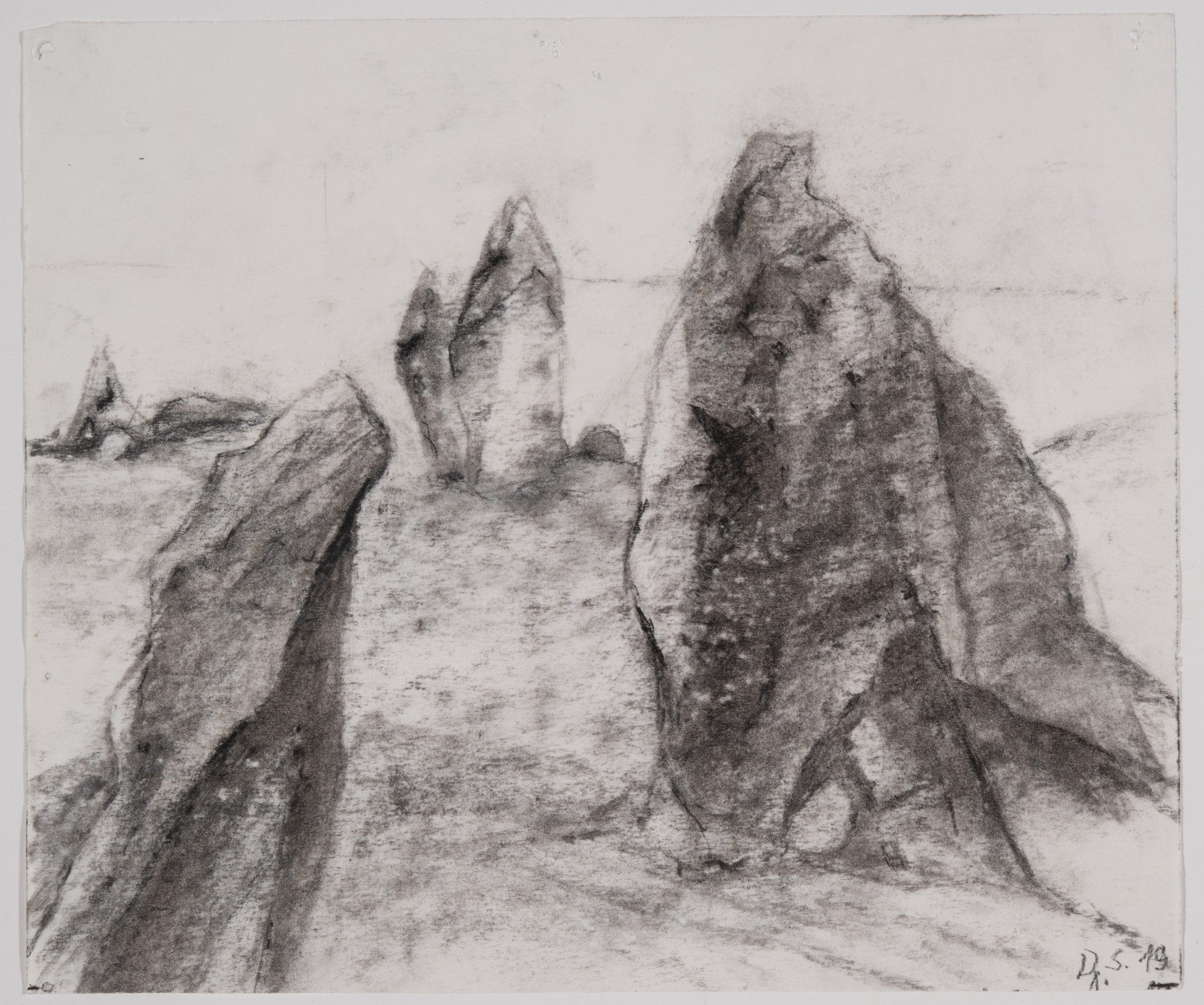 Una trentina di sue opere sono state selezionate per la personale ‘Il ritmo del segno’ allestita negli spazi della Galleria Job a Giubiasco (via Borghetto 8; per gli orari: www.fotolabojob.ch), in essere fino al prossimo 25 maggio. L’esposizione dei disegni (fra opere a sé stanti e studi o bozzetti per tele) è accompagnata da un agile catalogo, arricchito dei testi della storica dell’arte Maria Will e del giornalista Michele Fazioli. Al centro dell’esposizione v’è il tema del disegno che, andando oltre l’elemento di studio, in Spreafico, è “una costante dal primato assoluto”, scrive Maria Will aggiungendo che esso è incaricato di “dare l’impalcatura all’opera, intridendo di sé la pittura stessa”. Ed è lì, fra pittura e disegno, che “si incardina l’unicità del tratto espressivo di Spreafico”, detto ancora con le parole di Will.