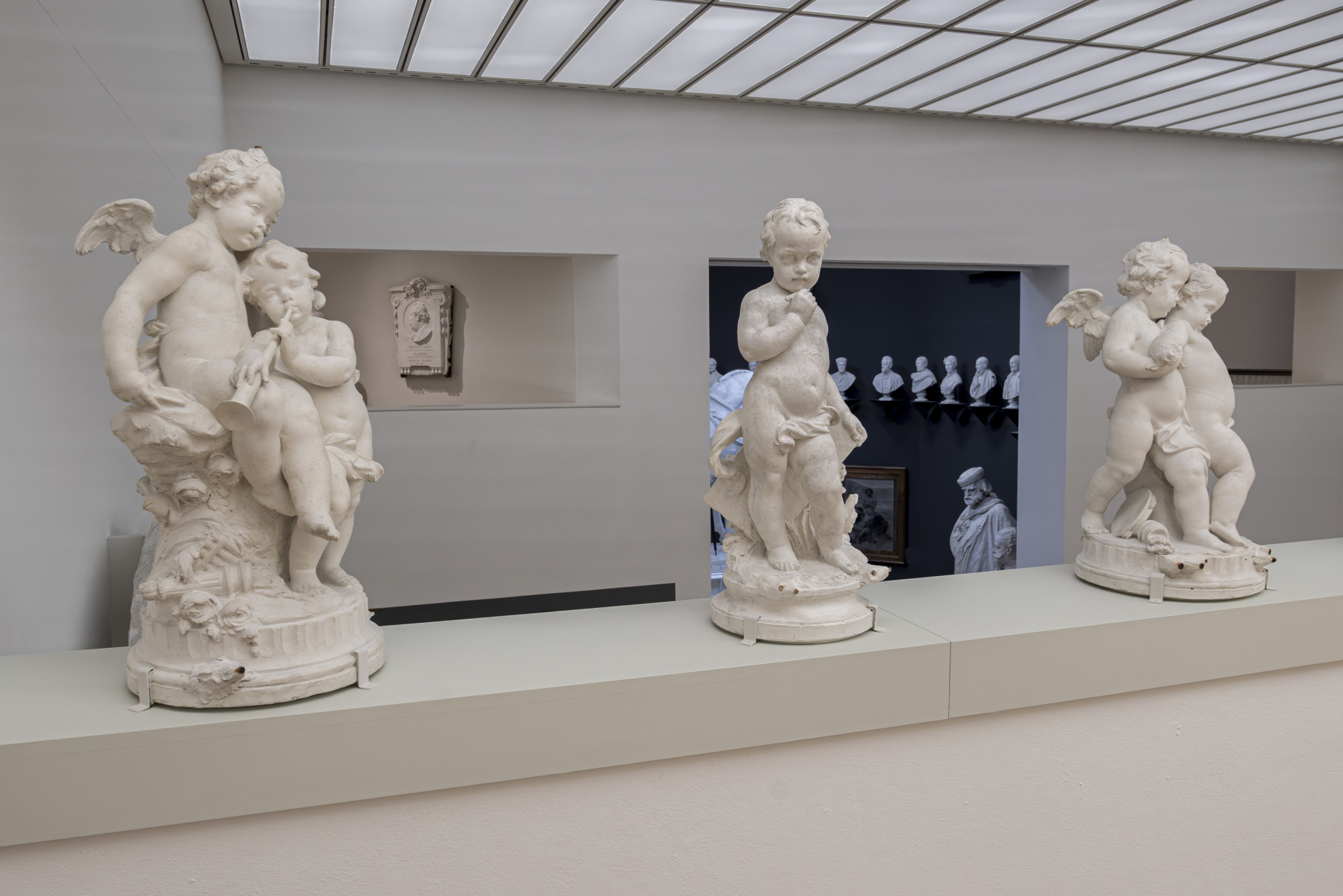 L’allestimento al Vela procede seguendo un criterio tematico che va dipanandosi nella mezza dozzina di sale dove è esposta una selezione rappresentativa (soprattutto modelli in gesso, progetti per sculture, ritratti e monumenti pubblici, ma anche bozzetti, documenti e fotografie) che ha nel lascito dell’artista al Comune di Stabio la sua principale fonte (il Fondo Natale Albisetti). Avanzando nella visita, dapprima ci si imbatte nella scultura a destinazione pubblica ‘Tra impegno civile e gaia leggerezza’, quindi i contenuti relativi a ‘Parigi e la scuola francese’, seguiti dai ‘Ritratti’, ‘Gli affetti’ (che rivelano il lato più intimo, sensibile e introspettivo del suo fare) e ‘Scultura di genere’. Il tour termina con i bozzetti relativi ai ‘Concorsi pubblici’ (principalmente quelli per Palazzo federale a Berna e il Politecnico di Zurigo).