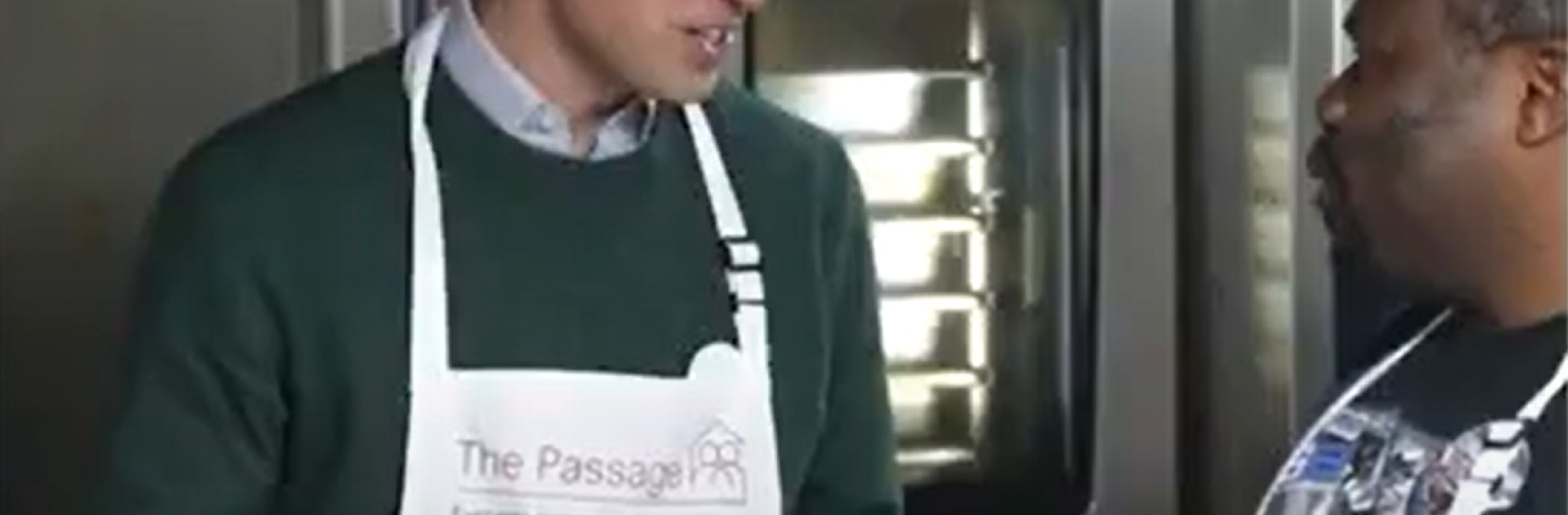 La famiglia reale è sempre più impegnata in opere di beneficenza, soprattutto con l'avvicinarsi del Natale. Dopo aver visto la principessa Kate alla Baby Bank di Maidenhead impacchettare, assieme ai tre figli, regali per i bambini bisognosi, tocca a William fare il volontario. L'erede al trono ha così indossato il grembiule per servire cibo ai senzatetto, in una visita a sorpresa al The Passage Charity di Londra, dove ha aiutato a preparare e a servire la cena di Natale. Il principe di Galles si è poi seduto attorno al tavolo e ha chiacchierato con i commensali, posando assieme a loro per le foto di rito.