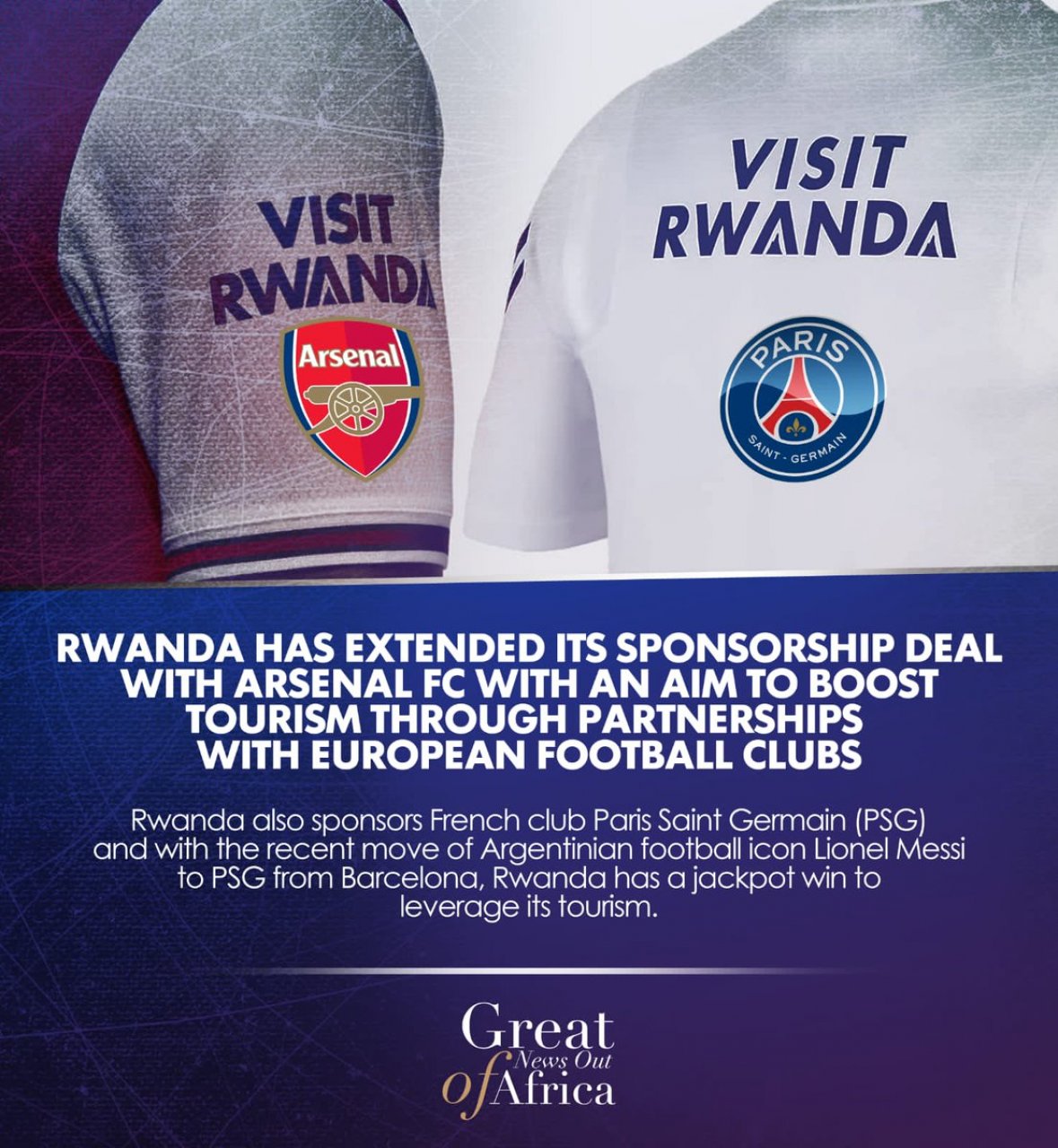 Visitate il Ruanda. Ve lo consiglia nientemeno che la costosissima manica della costosissima maglietta dell’Arsenal, club storico del calcio inglese caduto talmente in disgrazia da iniziare a fare danni anche fuori dal campo da gioco: abituati a dominare la scena all’inizio degli anni Duemila (li chiamavano “Gli Invincibili”), sono tredicesimi in classifica dopo aver iniziato il campionato con tre sconfitte, zero gol fatti e nove subiti. Insomma, non potrebbe andare peggio. Invece può.