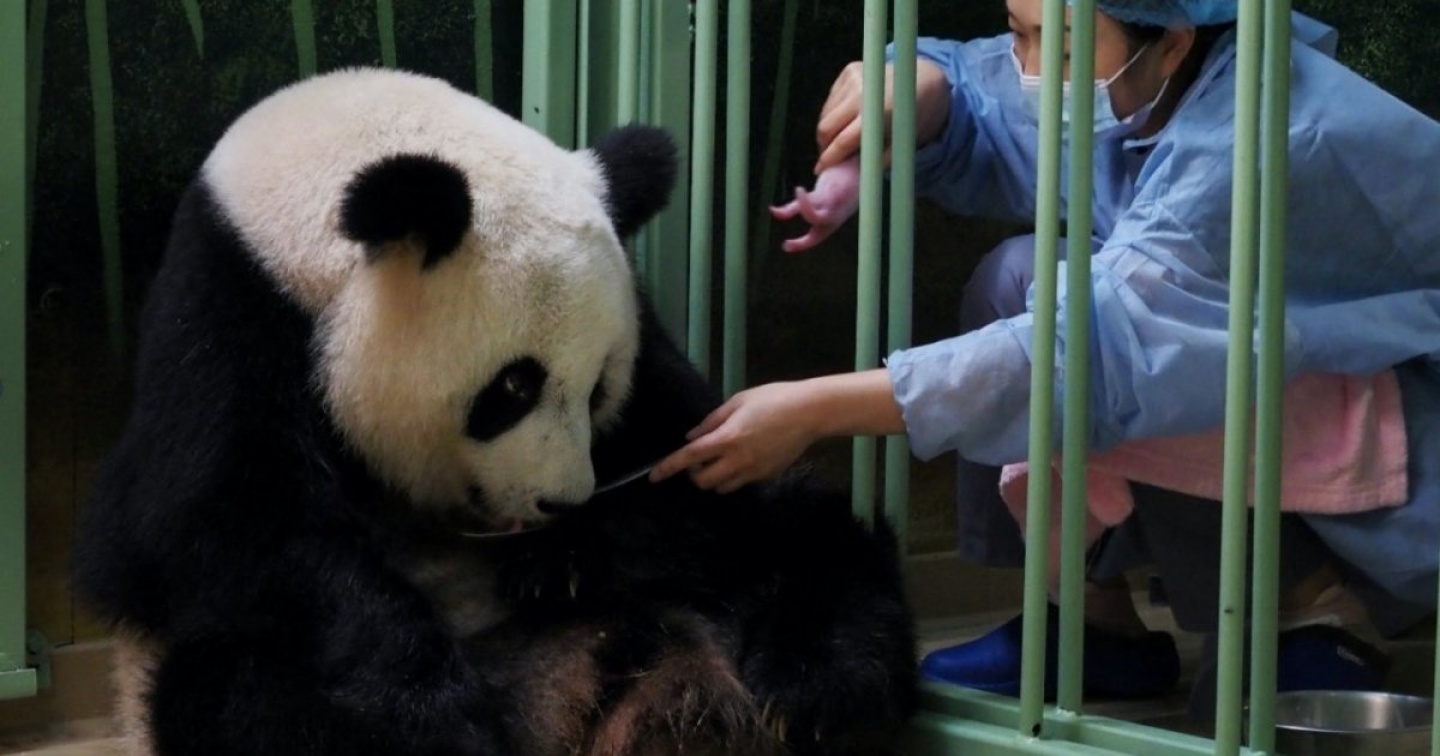 Mamma Huan Huan, femmina di panda gigante prestata della Cina ha partorito nella struttura della Francia Centrale