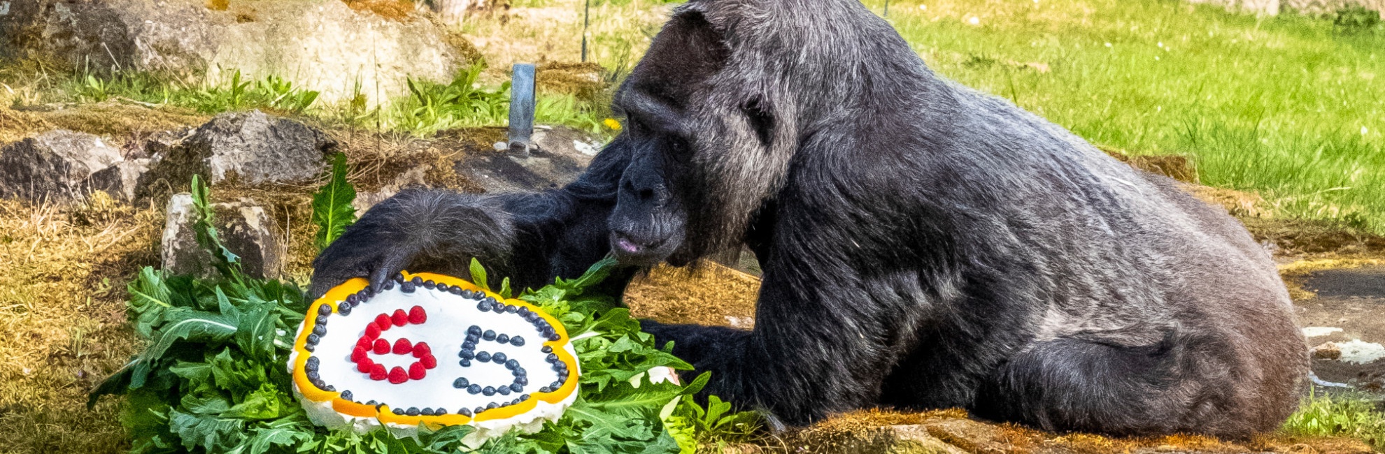 Lo Zoo di Berlino festeggia il suo gorilla, il più vecchio al mondo. Con tanto di torta, divenuta ormai consuetudine per lui