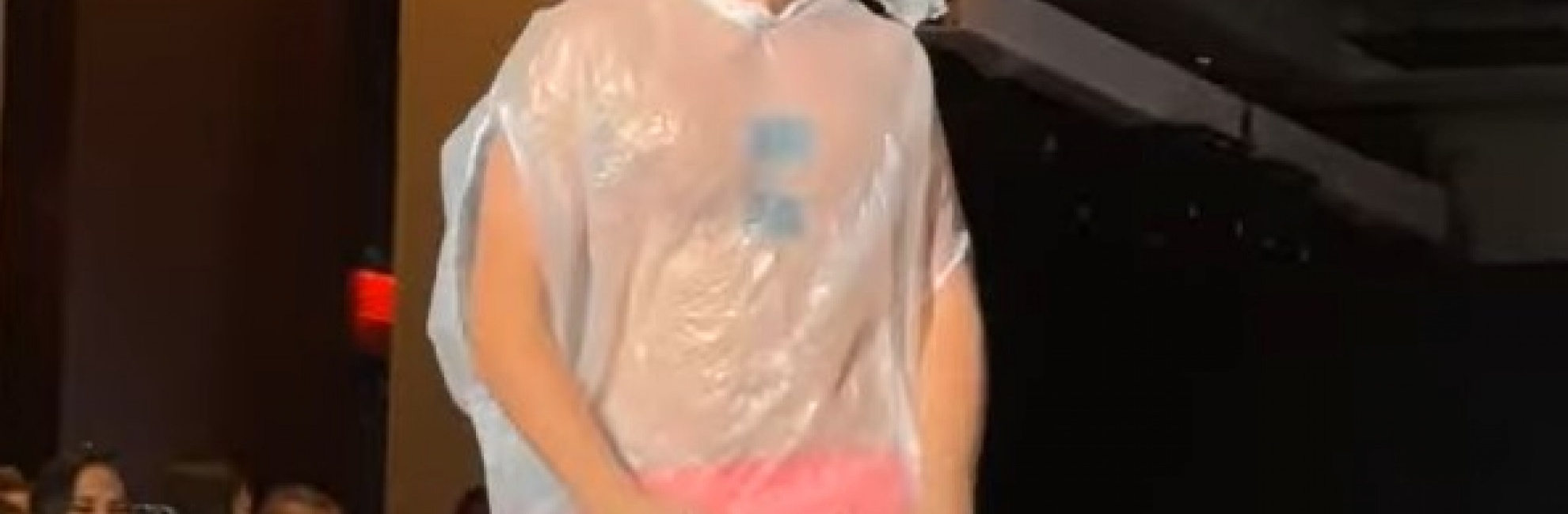 Un burlone non meglio identificato ha superato gli sbarramenti della sicurezza a una sfilata di moda a New York riuscendo a sfilare per pochi secondi sulla passerella, bizzarramente vestito con un impermeabile cerato trasparente e, in testa, una cuffietta da bagno anni Sessanta. L'uomo è stato prontamente ghermito da un muscoloso addetto alla sicurezza che l'ha sollevato di peso e riportato dietro le quinte. Non è chiaro cosa sia successo al malcapitato, che si è comunque guadagnato il suo quarto d'ora di notorietà grazie a un video YouTube che ha fatto il giro dei media americani e dei social. Non è stata l'unica invasione di campo di questa Fashion Week. Manifestanti dell’associazione animalista Peta hanno fatto irruzione alle sfilate di Coach e Michael Kors e anche loro sono stati portati via a forza dalla sicurezza.