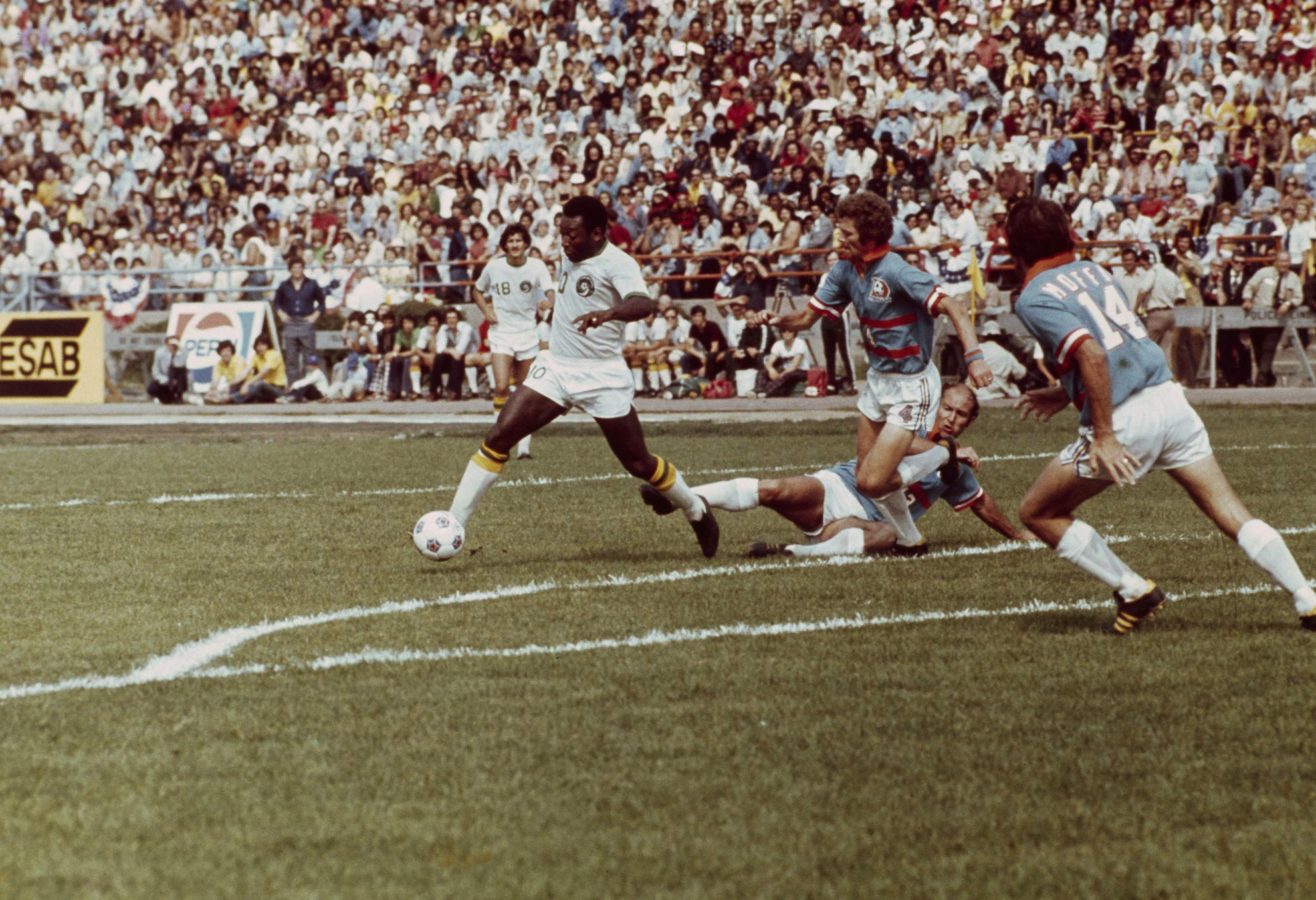 O Rei, che amava alimentare il mito di stesso, raccontò anche di un’esibizione in Colombia in cui l’arbitro osò espellerlo, ma le urla inferocite di compagni, avversari e pubblico costrinsero il malcapitato fischietto a lasciare il 10 in campo e ad andarsene lui. Per vedere il suo Santos giocare a Lagos, Nigeria e Biafra, che erano in guerra, stabilirono un cessate il fuoco di 48 ore. Tutti andavano matti per Pelé, a tal punto che, nel 1961, il Brasile decise di renderlo, con un atto governativo, "patrimonio nazionale". Da quel momento le squadre che si erano messe in fila per acquistarlo (Juventus, Real Madrid, Manchester United e Inter, quella che ci arrivò più vicina) dovettero arrendersi. L’unica altra maglia che indosserà - un anno dopo il ritiro con il Santos - sarà quella dei New York Cosmos. La vestirà per tre stagioni fino al ritiro definitivo nel 1977, portando per la prima volta il "soccer" all’attenzione degli altri americani, quelli che hanno deciso di tenere tutto il nome di un continente per sé.