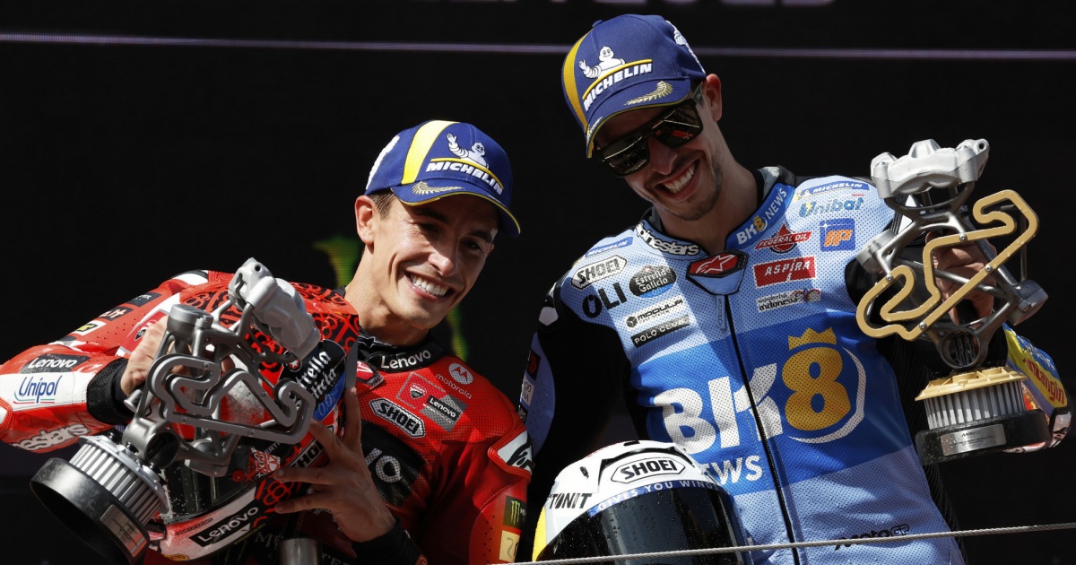 ‘Mi spiace per mio fratello, ma le corse sono così’. Sul podio con Marquez finiscono gli italiani Bezzecchi e Bagnaia (con l'altra Ducati ufficiale)