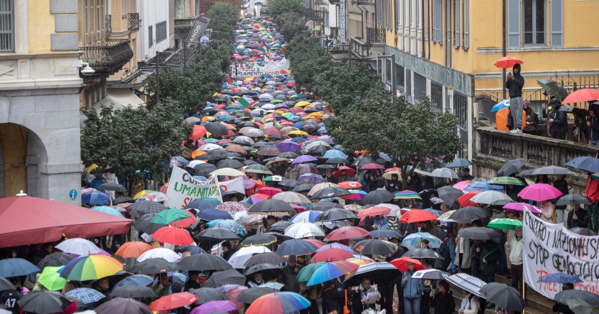 Un corteo di centinaia di migliaia di persone ha sfilato pacificamente per alcune ore a Roma ...