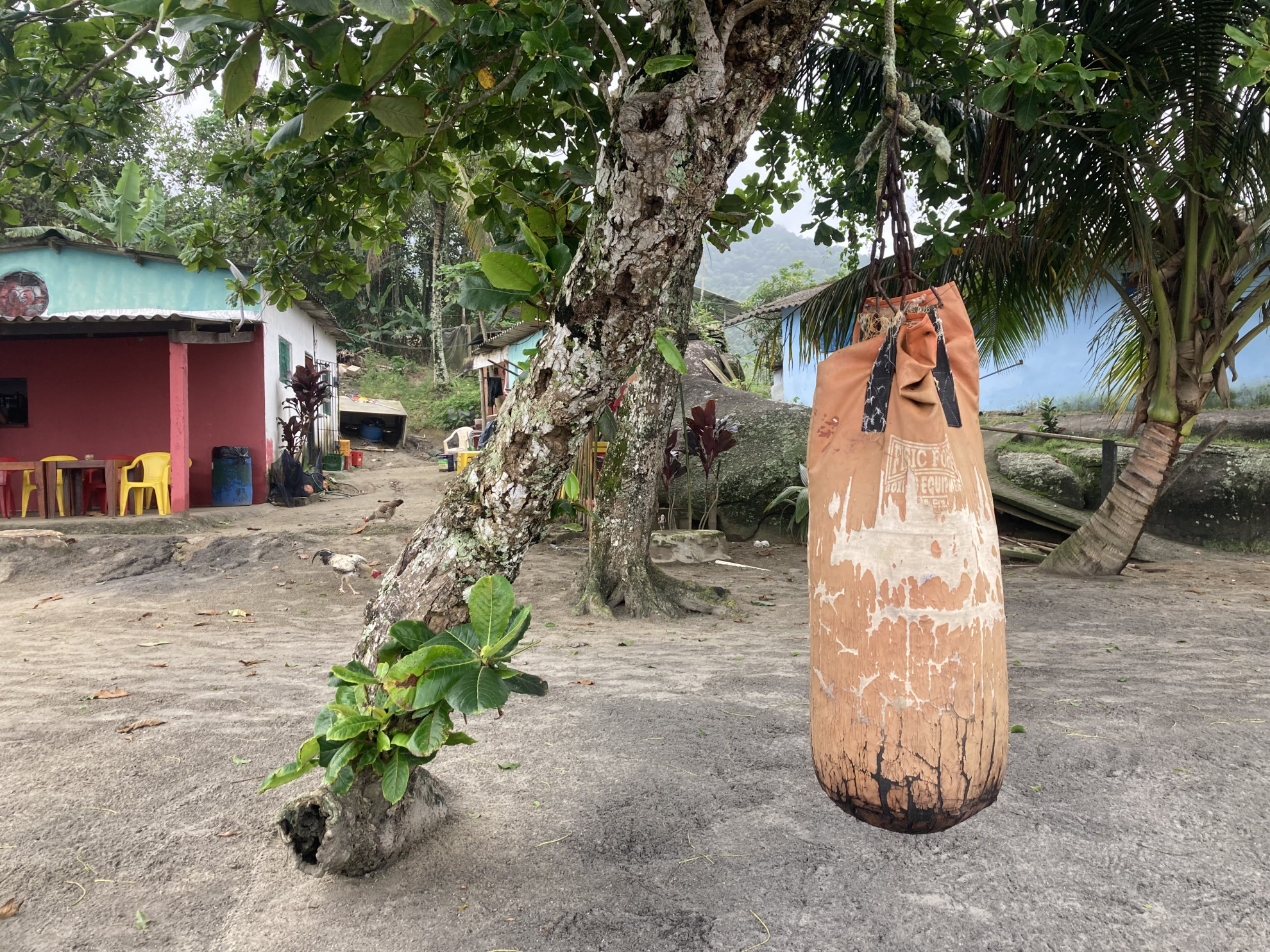 Per arrivare alla spiaggia, che si trova sul lato dell’isola affacciato sull’Atlantico (e dove non esistono centri urbani), si può salire su un 4x4 che attraversa giungla e cascate. Ma solo al mattino. La strada è stretta e dissestata, quindi nelle prime ore della giornata si procede solo verso est, al pomeriggio verso ovest. E fare i furbi è impossibile: ci sono i controlli. La maggioranza in giornata rientra. Ma c’è chi si arrangia in strutture spartane in loco. Volendo, e pagando, c’è una terza via, la più ovvia su un’isola: il mare. Io - dotato di una discreta dose di sconsideratezza, ma privo di antizanzare - avevo pensato fosse una buona idea rimanere qualche ora extra e tornare in motoscafo. Neanche a dirlo: non lo era. Depositato sulla spiaggia dalla jeep sono subito andato nella zona più paludosa a farmi un giro. A un certo punto sento un forte prurito alle gambe. Mi gratto d’istinto senza nemmeno abbassare lo sguardo e sento il contatto delle dita con uno strano liquido più viscoso dell’acqua. Guardo ed è come se indossassi delle lunghe e sottilissime calze rosse. Invece è il mio sangue. Mi immergo nell’acqua, mi ripulisco e inizio a sentire un pizzicore diffuso che non mi abbandonerà per quasi una settimana. Il resto della giornata la passerò a ustionarmi la bocca al ristorante, cercare sollievo dalle punture e gironzolando per la spiaggia: c’è un vecchio sacco da boxe appeso a un albero, un bambino che gioca con una specie di liana e anche un telone su cui in serata, per chi resta e ha abbastanza antizanzare da sopravvivere, verrà proiettato un film.