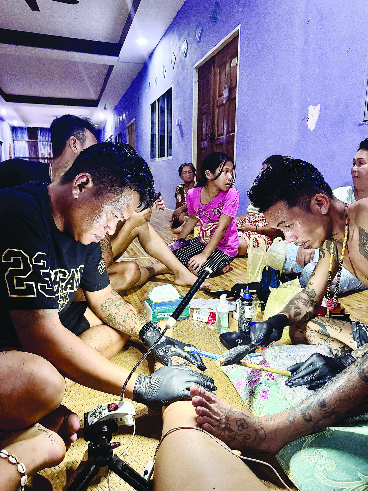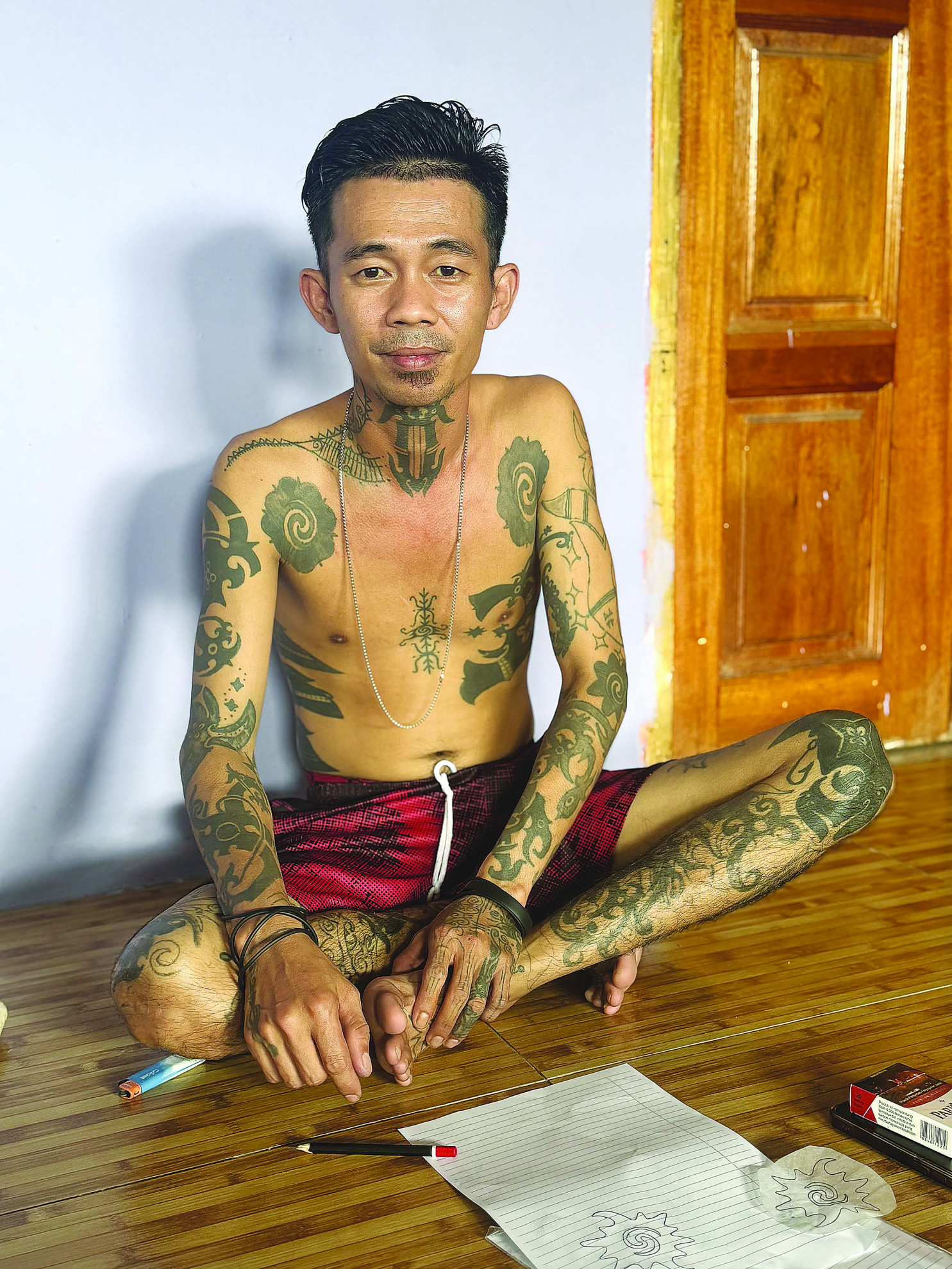 Lo studio di Boy Skolang è piccolo, raccolto, pieno di fotografie ingiallite che raccontano di un altro tempo. Per settimane ho frequentato lui e un gruppo di tatuatori locali, osservato Boy che tatuava, ascoltato discorsi e storie e letto tutto ciò che riuscivo a trovare. Più il tempo passava, più mi rendevo conto che non potevo andarmene senza un segno di tutto ciò sulla pelle.