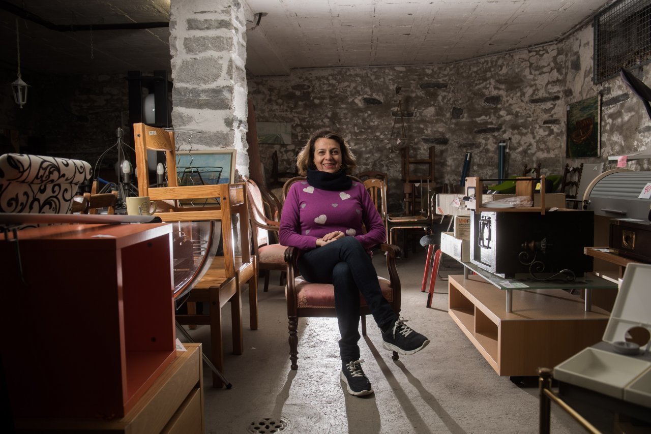 “Entrate a curiosare” è l’invito sul cartello apposto davanti al grazioso edificio color salmone che tenta di salvare da una fine precoce capi d’abbigliamento, stoviglie, libri, giocattoli, mobili, oggetti rustici e antichi, tutti accuratamente verificati nel loro stato. “Ci sono diversi pezzi unici che non si trovano altrove, oggetti d’antiquariato, altri provenienti da lontano, alcuni davvero particolari – spiega Georgina con evidente senso di attaccamento per quel negozio in cui trascorre le giornate –. Molti dei clienti sono affezionati che passano regolarmente per dare un’occhiata alle novità, fare quattro chiacchiere, lasciare qualcosa di cui raccontano i trascorsi. Passano anche tanti giovani amanti di vestiti e calzature vintage, turisti incuriositi, gente che cambia casa e la vuole arredare con originalità, senza pesare sull’ambiente e senza spendere troppo”. Desiderio di convivialità, gusto per il non convenzionale così come attenzione alla sostenibilità ecologica ed economica sono dunque le motivazioni, spesso intrecciate, che conducono i frequentatori in questo spazio tutto da esplorare. Elementi che costituiscono da sempre anche i cardini della vita di Georgina. “Per me questo lavoro è una vera passione. Da sempre amo le cose antiche e il fatto di dar loro una seconda vita, trasformarle, decorarle, rimetterle in circolazione. Fin da piccola indossavo i vestiti di mia sorella maggiore, in famiglia ci passavamo i mobili e molti altri oggetti. Ho ancora ben presente nella mente l’immagine delle antiche padelle di rame portate dall’Italia da mio nonno”.