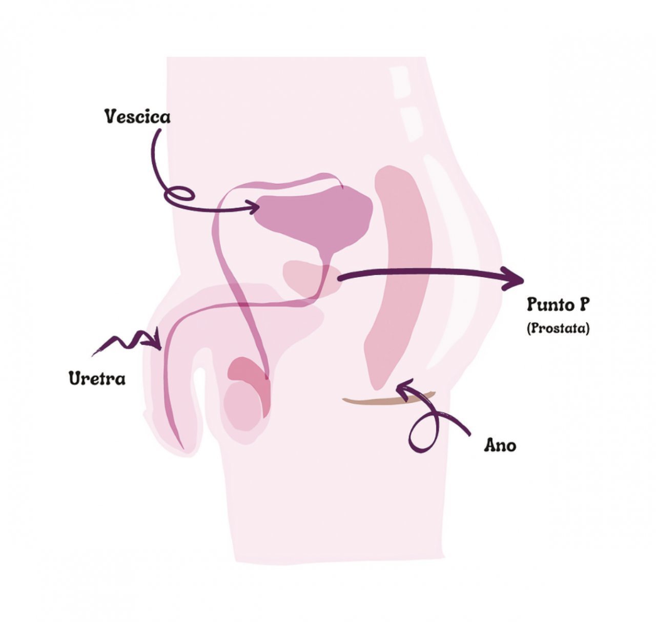 La prostata è una ghiandola sotto la vescica e produce una sostanza che protegge gli spermatozoi ed esce durante l’eiaculazione. Molti uomini si sono accorti che la palpazione della prostata dà piacere fisico; tuttavia per la scienza numerose testimonianze non significano ancora evidenza: ci vorrebbe una ricerca, ma forse, commenta la sessuologa, “anche nel mondo scientifico il piacere per via anale è ancora tabù. Tuttavia, Ben, puoi provare a sentirla: dall’interno la sensazione è più forte, ma si può stimolare anche dall’esterno (cioè accarezzando quella zona tra l’ano e la base del pene chiamata perineo)”. La prostata è dunque chiamata il ‘Punto P’ dell’uomo, un punto che, si dice, dà un orgasmo ancora più intenso e più lungo di quello fallico.